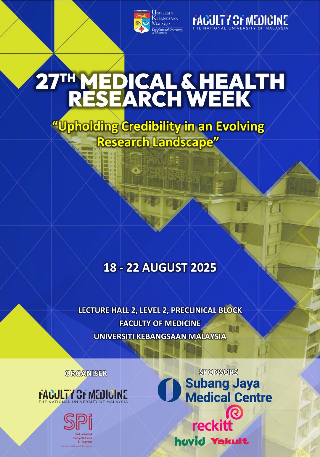 Conference Published on 17 Sep, 2025 27th Medical & Health Research Week Vol. 20 No. 3 (suppl) : 2025 (1-84) Keywords : Kata Kunci : Download article Related Articles Conference 04 Nov, 2025 Parasitology & Tropical Medicine Symposium Conference 15 Oct, 2025 2nd Asia Oceanic Society of Paediatric and Adolescent Gynaecology (AOSPAG) Congress Conference 25 Sep, 2025 14th Allied Health Scientific Conference 2025 Conference 17 Jul, 2025 The 5th International Conference Advances in Medical Science Conference 03 Jul, 2025 International Conference on Pharmaceutical & Health Sciences 2024 Conference 28 Jan, 2025 2023 International Conference in Healthcare Simulaton